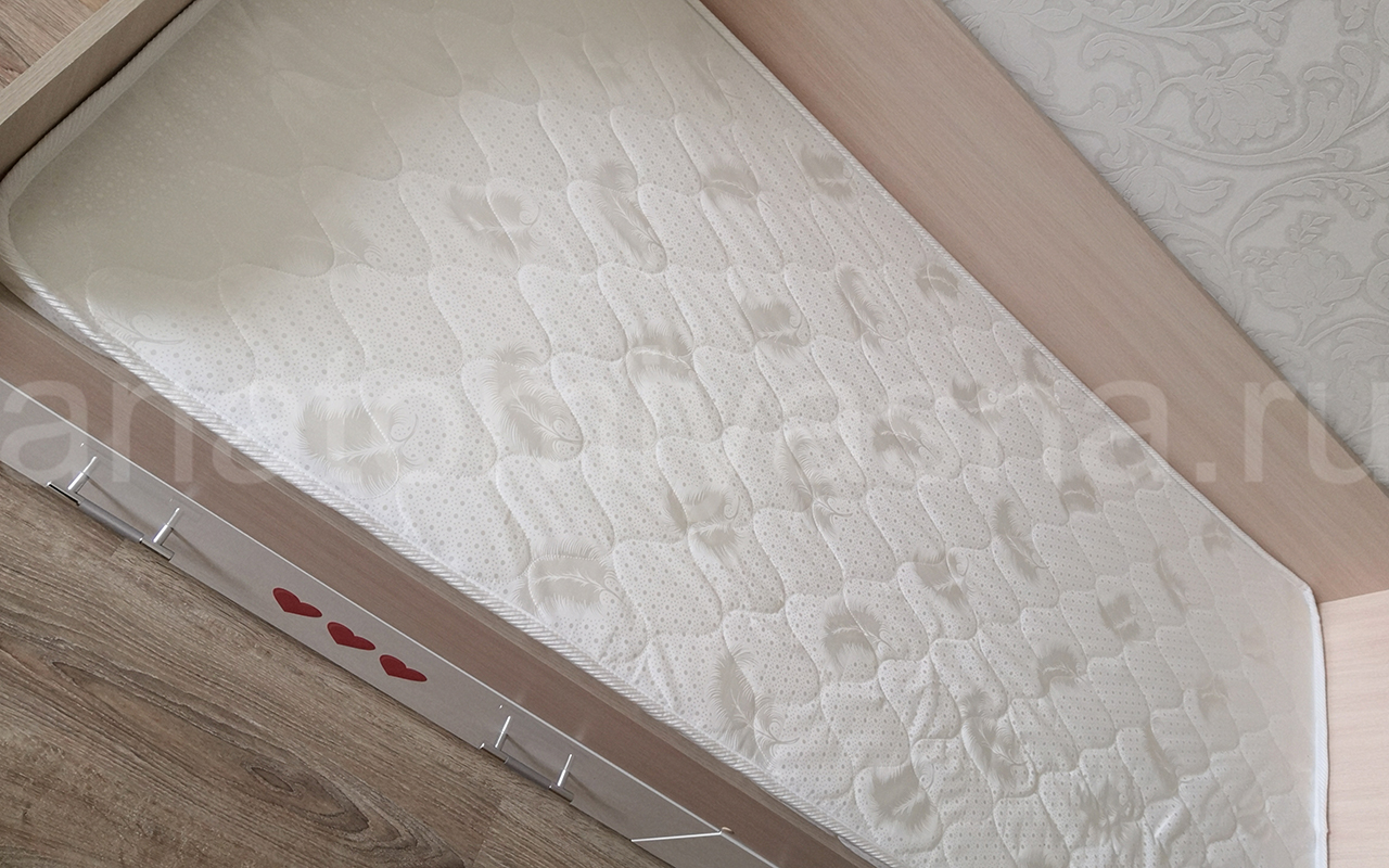 Комфортный наполнитель ППУ придает умеренную жесткость спальному месту. Однако, из-за способности материала впитывать влагу не рекомендуется использовать такие модели во влажных помещениях.